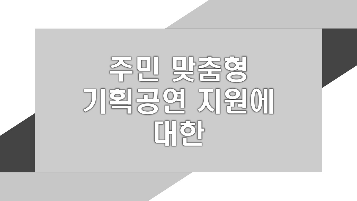 주민 맞춤형 기획공연 지원은 지역 주민들에게 맞춤형 문화예술 프로그램을 제공함으로써 지역 사회의 문화적 저변을 확대하는데 큰 역할을 하고 있습니다. 이는 주민의 참여를 유도하고, 다양한 문화적 접점을 만들어 낼 가능성을 지니고 있습니다. 앞으로도 이러한 지원사업이 활성화되어 지역 문화가 더욱 발전하고, 주민의 문화적 혜택이 확대되기를 기대합니다.