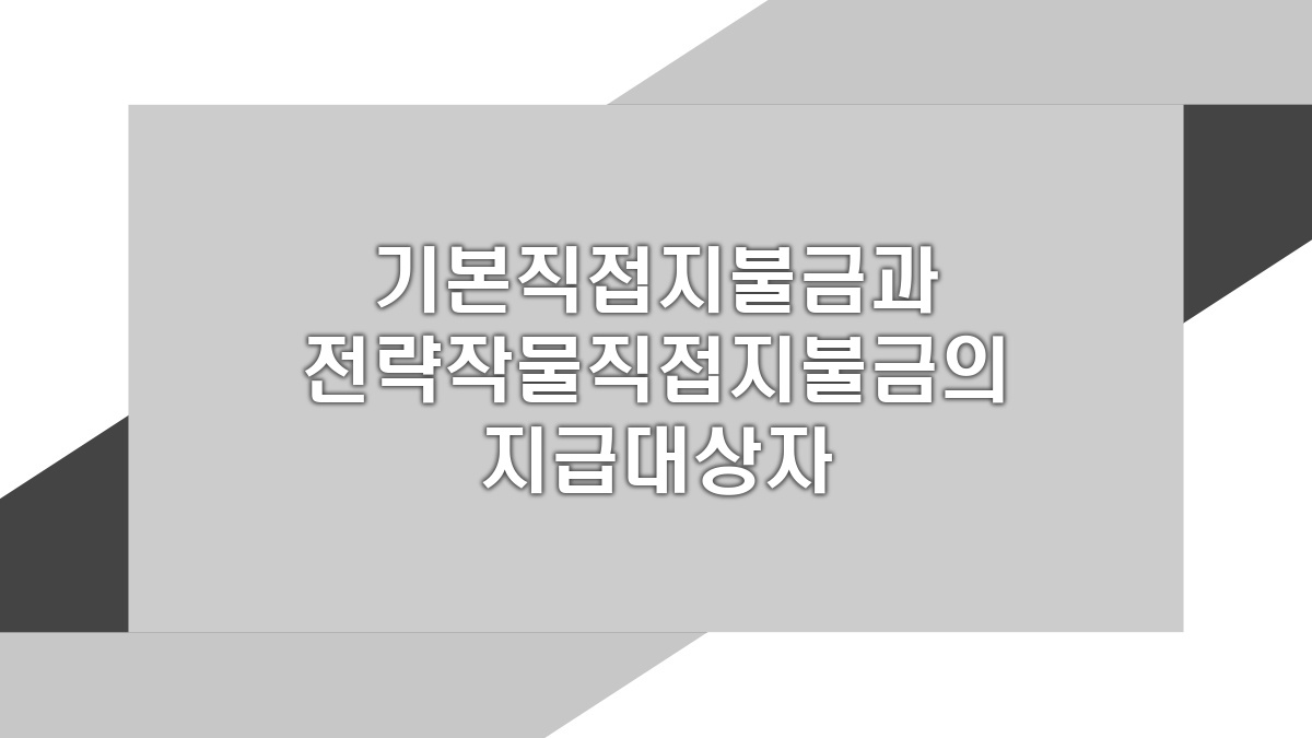 | 전략작물직접지불금 | 특정 전략작물 재배 농업인 | 지정된 기관에 신청 |