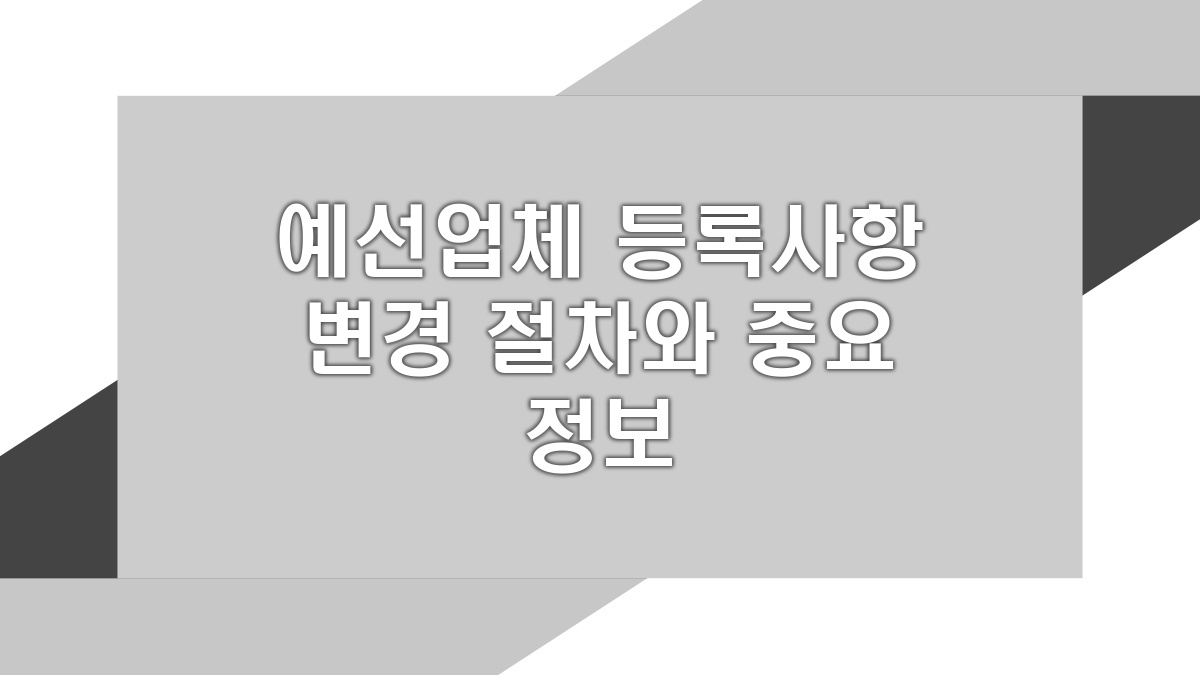 예선업체 등록사항 변경은 기업 운영에서 핵심적인 단계입니다. 절차를 철저히 이해하고 따르는 것이 요구되며, 각 단계에서 필요한 문서를 정확히 준비하는 것이 중요합니다. 지속적인 관리와 점검을 통해 기업의 신뢰성과 법적 요구사항을 준수할 수 있다. 결과적으로 이는 기업의 안정적인 운영과 발전에 기여하는 중요한 요소가 됩니다. 기업의 성공을 원한다면 등록사항 변경에 소홀함이 없어야 합니다.