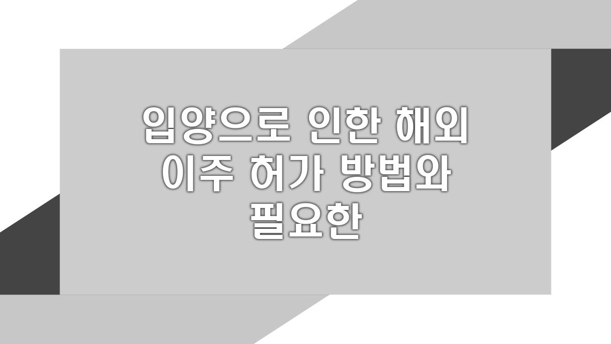 입양하고 해외로 이주하려는 사람들을 위한 다양한 정보가 필요할 수 있다. 이 과정은 여러 단계와 서류를 필요로 한다는 사실을 잊지 말아야 한다. 만약 입양 후 해외로 이주하고 싶다면, 관련 법규와 절차를 철저히 이해하는 게 중요하다. 이를 통해 수월하게 이주 절차를 진행할 수 있을 거다. 입양 관련 정보를 탄탄하게 정리해서 한눈에 볼 수 있게 하면 좋을 것 같다.