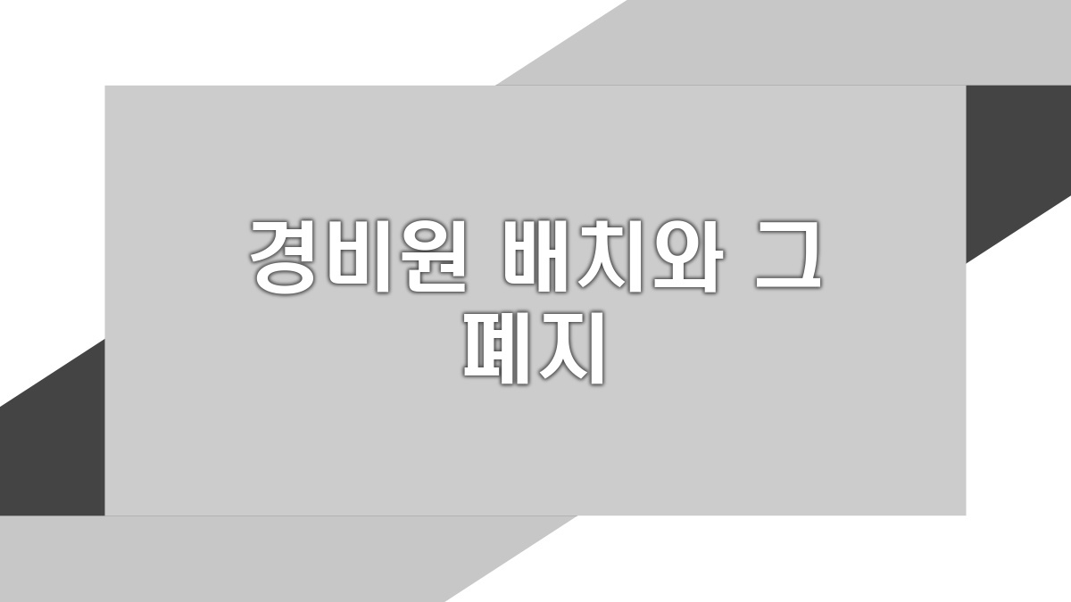 반면, 경비원 배치는 비용이 발생하니까 예산 관리를 잘해야 해. 특정 지역에 경비원이 필요하지 않다고 느끼는 경우도 있어. 이런 경우에는 경비원 배치를 해제하고 다른 대안을 고민하기도 하지. 경비원의 필요성에 대한 판단이 중요한 시점이기도 하니까, 관련된 상황을 잘 분석하고 결정해야 한다고 봐.