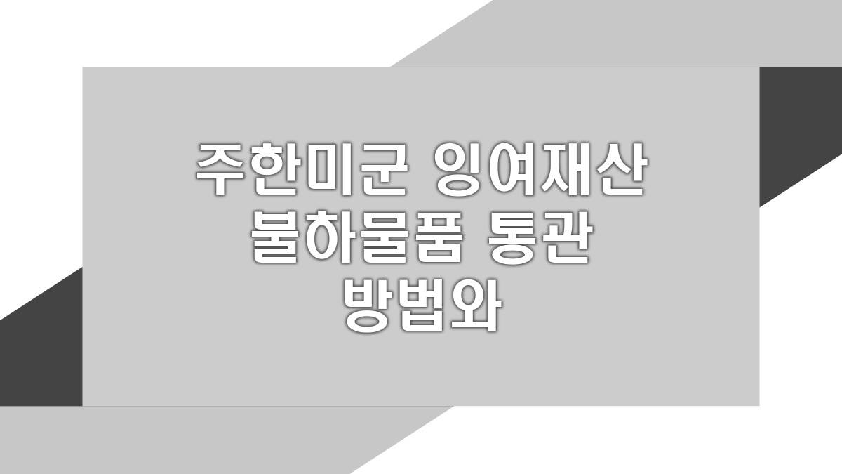 주한미군 잉여재산 불하물품 통관은 절차가 꽤 복잡할 수 있음. 그러나 사전 준비를 충분히 하고, 정확한 정보를 갖추면 통관이 수월해질 수 있음. 무엇보다도 서류 준비가 핵심인데, 이를 철저히 하면 문제없이 통관할 수 있음. 통관 과정을 원활하게 진행하기 위해선 각 단계마다 주의를 기울여야 함. 모두 잘 준비해서 필요한 물품을 무사히 받아보길 바람.