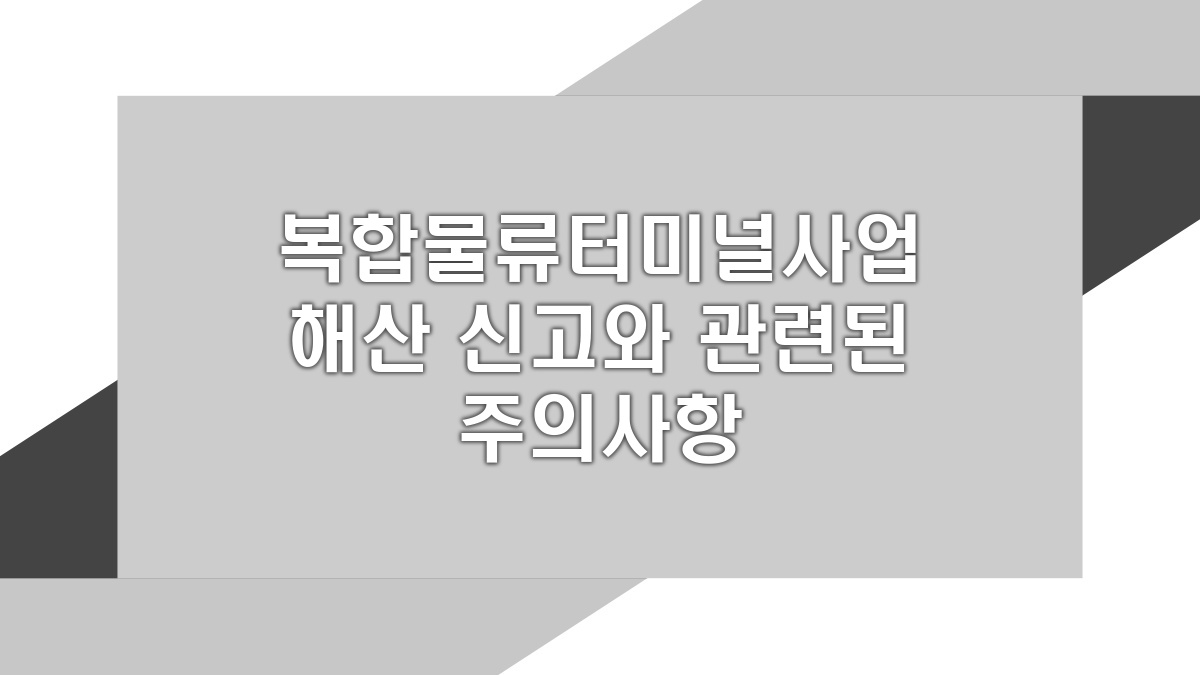 복합물류터미널사업의 해산 신고는 복잡할 수 있지만, 준비만 잘 하면 문제 없이 진행할 수 있음. 필요 서류를 미리 확인하고, 기관의 요구 사항에 맞게 진행하는 게 필수임. 시간을 충분히 두고 준비하며, 전문가와 상의하면서 진해하는 것도 좋은 방법임. 해산 후 발생할 수 있는 세무 문제에도 신경 써서 올바르게 관리하면 더욱 좋음.