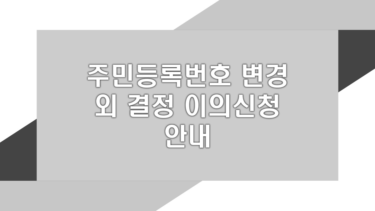주민등록번호와 관련한 여러 결정이 있을 때, 이의신청을 하는 방법을 알아보자. 주민등록번호 변경 외에도 다양한 결정에 대한 이의신청이 가능하다. 기준이 되는 사항을 잘 파악해서 해당 내용을 참고하면 정확하게 이의신청을 진행할 수 있다. 이렇게 하면서 필요한 서류나 절차를 미리 숙지할 필요가 있다. 상세한 내용은 관련 기관의 공고를 꼭 확인해봐야 한다. 그리고, 원활한 처리를 위해서는 기한 내에 신청하는 것이 중요하다.