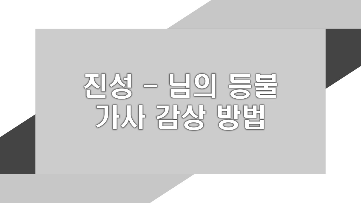 '님 의 등불'은 많은 이들에게 사랑받고 있는 진성의 대표곡임. 부드러운 멜로디와 가사가 슬픈 사랑을 잘 그려내고 있어서 더욱 감동적임. 이 노래를 통해 자신의 감정에 공감해보고, 여러 번 반복해서 감상해보는 걸 추천함. 그럼 음악의 힘을 제대로 느낄 수 있을 거임. 좌절과 슬픔 속에서도 이 노래가 조금이라도 위로가 되길 바람.