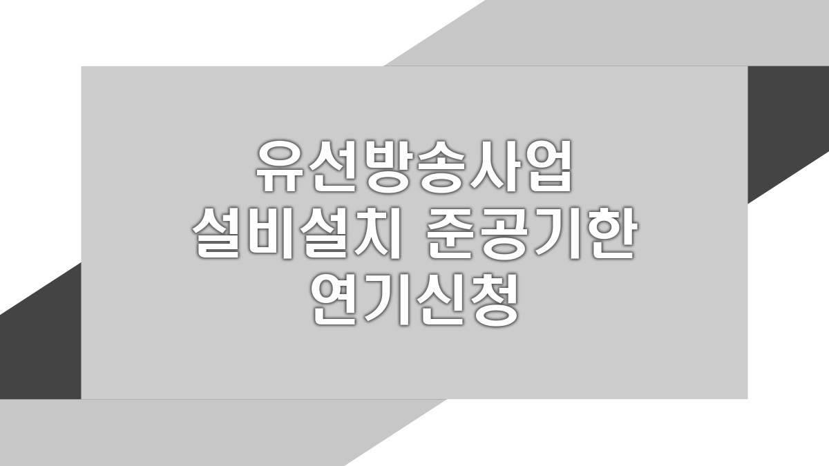 유선방송사업의 설비설치 준공기한을 연기하고 싶다면, 어떤 절차가 필요한지 궁금할 수도 있지. 이 과정은 신청 서류를 준비하고, 관련 부서에 제출하는 단계로 진행되는데, 시간과 정확성이 중요해. 그래서 미리 모든 필요한 정보를 체크하고, 준비를 해두면 좋아. 예상되는 delay의 사유나 기존의 진행 상태 등을 철저히 정리해두면 더욱 좋지.