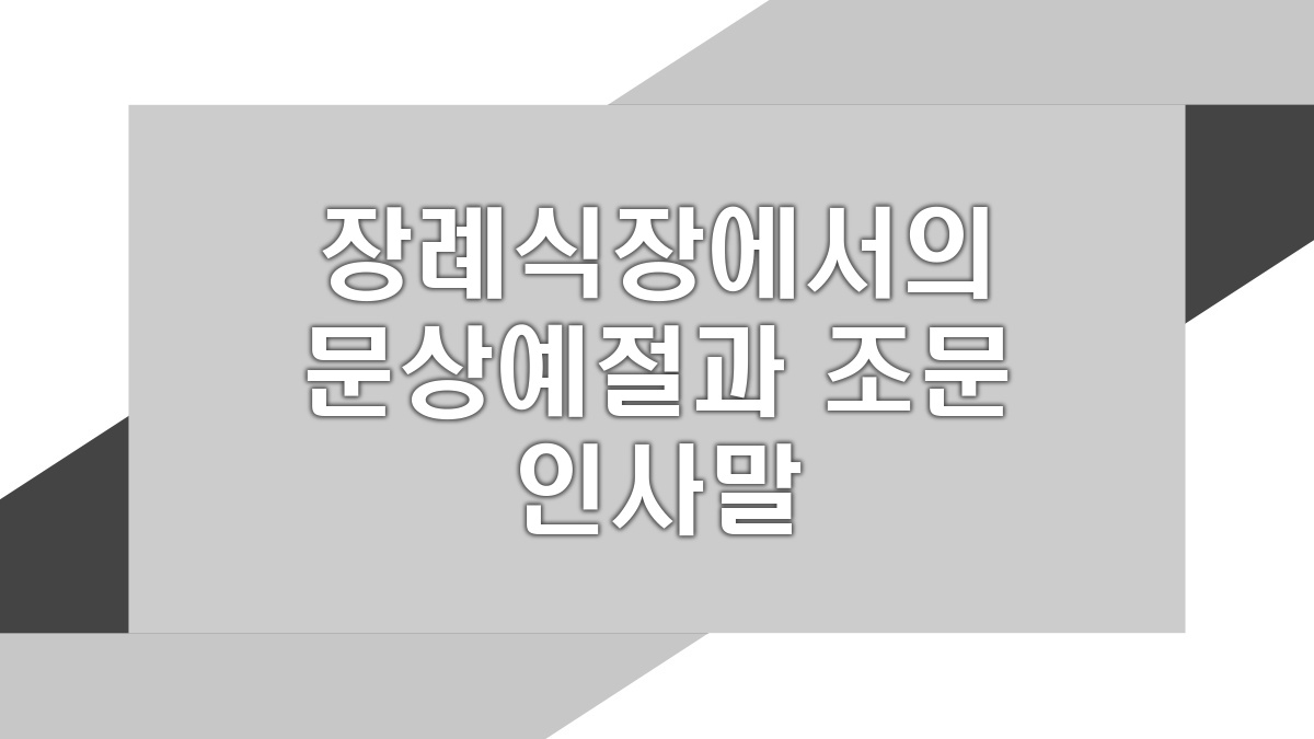 장례식장은 슬픔이 가득한 공간이야. 이럴 때 문상예절을 잘 지키는 게 중요해. 조문할 때는 고인의 가족에게 애도의 마음을 전해야 해. 조문 인사말은 간단하고 진솔하게 전하는 게 좋아. '고인의 명복을 빕니다' 같은 말로 마음을 전할 수 있어. 아무리 힘든 상황이어도 서로의 슬픔을 이해하려고 노력해야 해. 이 정보를 통해 문상 예절을 잘 지키는 데 도움이 될 거야.