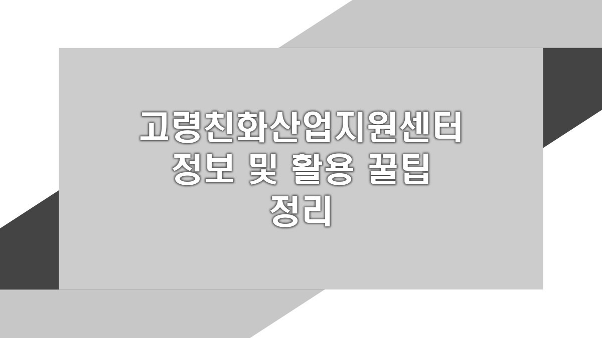 고령친화산업지원센터는 고령자를 위한 다양한 산업을 지원하는 기관이야. 이곳에서는 고령친화 제품 개발뿐 아니라 서비스 제공 및 관련 정보도 제공해. 많은 기업이 이곳의 지원을 통해 다양한 아이디어를 현실로 만들고 있지. 특히, 고령친화 서비스를 원하는 경우 여기서 정보를 얻고, 도움을 받을 수 있어. 지원 내용과 신청 방법을 미리 알아두면 좋겠지.