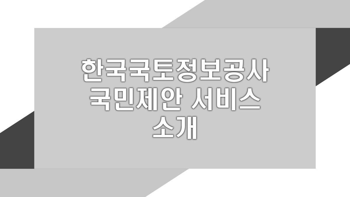 한국국토정보공사의 국민제안 서비스는 국민이 직간접적으로 정책에 참여하는 좋은 기회를 제공한다. 이 서비스를 통해 자신이 생각하는 아이디어를 자유롭게 제안할 수 있으니, 많은 참여가 필요해. 제안을 통해 더 나은 국토 정보 환경이 만들어질 수 있으므로, 적극적으로 이용해볼 것을 권장한다. 모두가 함께하는 국토 정책 수립의 길이 되길 바라.