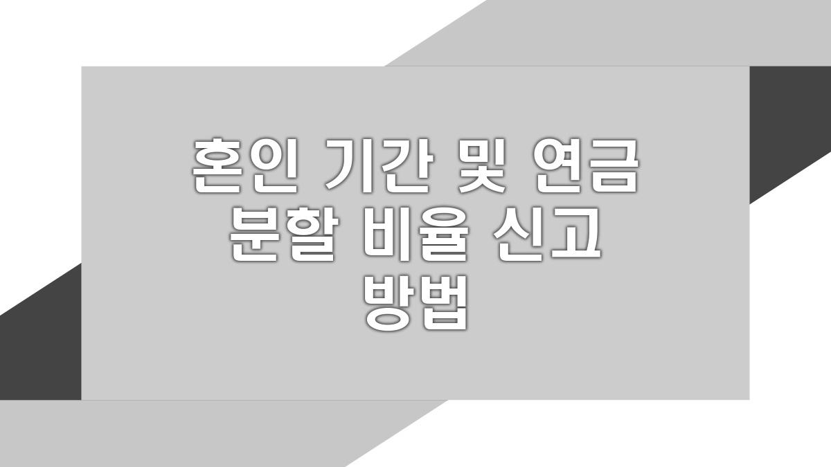 혼인 기간과 연금 분할 비율 신고는 중요한 절차야. 특히 이혼 후 재정적 안정성을 유지하기 위해서는 필요하거든. 이 과정에서는 법적 요건과 필요한 서류들이 있어. 필수적으로 준비해야 하는 서류는 혼인증명서, 이혼 조정서 등이지. 기간 중 필요한 정보들을 충실히 준비하는 게 중요해. 늦지 않게 신고해서 문제가 생기지 않도록 해야 돼. 각자의 상황에 맞게 잘 예방하는 게 핵심이야.