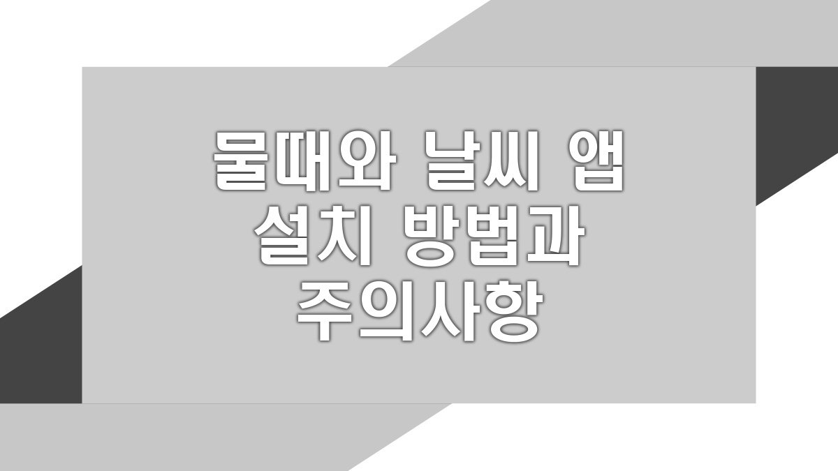 물때와 날씨 앱은 바다를 즐기는 사람에게 필수인 앱임. 이 앱을 통해 정확한 물때 정보와 날씨 예보를 쉽게 확인할 수 있음. 설치 과정도 간단하고, 사용자들이 많이 사용하는 이유도 여기 있음. 설치 방법은 웹 사이트를 통해 APK 파일을 다운로드하고, 안전하게 설정 후 설치할 수 있음. 물때와 날씨 앱을 설치하면 더 나은 해양 활동을 할 수 있음.