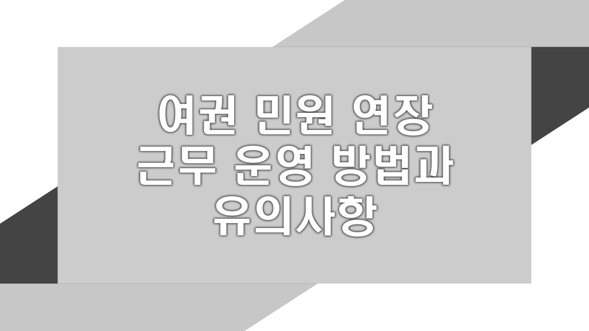 - 여권 민원 연장 근무는 퇴근 후에도 가능한 경우가 많아.